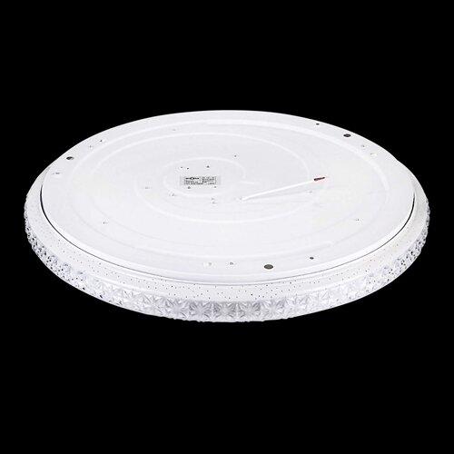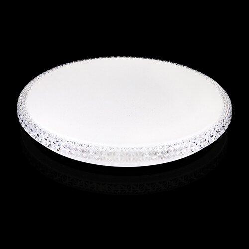 Данный накладной светильник имеет белый цвет и круглую форму. Мощность изделия составляет 42 Вт, что эквивалентно 400 Вт в пересчете на лампу накаливания. Светильник излучает световой поток в 3360 лм, обеспечивая светоотдачу в 80 лм/Вт и углы разлета лучей до 170°С. Оттенок свечения – нейтральный, соответствующий цветовой температуре 4500 К, индекс цветопередачи – 80 единиц. Напряжение питания – 175-265 В, класс защиты – IP20. Возможность дымирования у данной модели не предусмотрена.