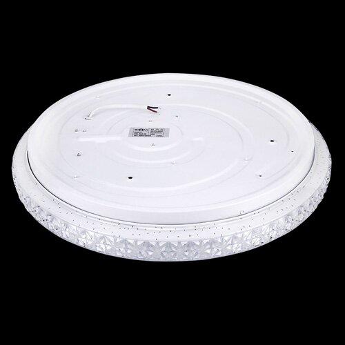 Этот накладной светодиодный светильник имеет мощность 36 Вт, что эквивалентно 325 Вт для лампочки накаливания. Он излучает нейтральный свет с цветовой температурой 5000 К. Изделие имеет круглую форму, матовый рассеиватель и окрашен в белый цвет. Напряжение питания составляет 175-265 В, световой поток –; 2880 лм, а световая отдача – ; 80 лм/Вт. Углы свечения доходят до 170°, а индекс цветопередачи равен 80 единиц. Класс защиты устройства –ndash; IP20, пульт в комплект поставки не входит.