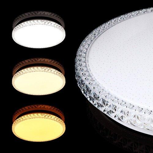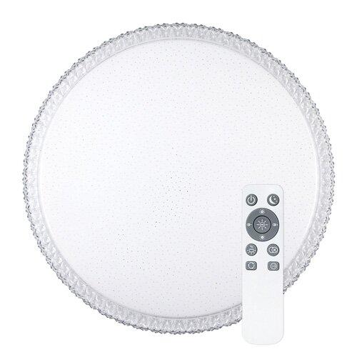 Данный светодиодный смарт-светильник имеет круглую форму и окрашен в белый цвет. Мощность изделия составляет 50 Вт, что эквивалентно 450 Вт в пересчете на лампу накаливания. Светильник излучает световой поток в 3800 лм, обеспечивая углы разлета лучей до 170°С. и светоотдачу 76 лм/Вт. Оттенок свечения может колебаться от 3000 К (теплое) до 6000 К (холодное), индекс цветопередачи – 80 единиц. Напряжение питания – 175-265 В. Арматура изделия изготовлена из металла, плафон – из поликарбоната. Класс защиты – IP20. В комплекте со светильником поставляется пульт управления. Также у данной модели предусмотрена возможность дымирования.