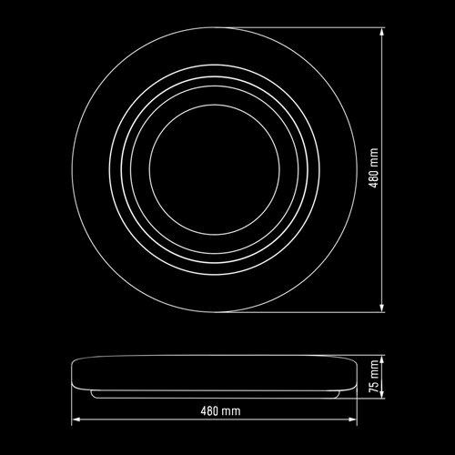 Этот светодиодный смарт-светильник имеет мощность 80 Вт, что эквивалентно 720 Вт для традиционных источников света. Цветовая температура модели колеблется в диапазоне 3000–6000 К (от теплой до холодной части светового спектра). Рассеиватель изделия матовый и окрашен в белый цвет. Напряжение питания составляет 175-265 В, световой поток –; 6400 лм, а светоотдача – ; 80 лм/Вт. Углы свечения доходят до 170°, а индекс цветопередачи равен 80 единиц. Класс защиты светильника – IP20. Его арматура выполнена из металла, а плафон – ; из поликарбоната, благодаря чему получается мягкий рассеянный свет. В комплекте со светильником поставляется пульт управления. Также у данной модели предусмотрена возможность дымирования.