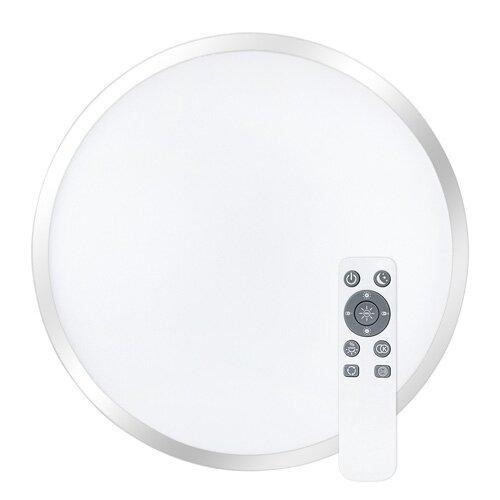 Данный светодиодный смарт-светильник рассеянного света имеет круглую форму и окрашен в белый цвет. Мощность изделия составляет 80 Вт, что эквивалентно 720 Вт в пересчете на лампу накаливания. Светильник излучает световой поток в 6400 лм, обеспечивая углы разлета лучей до 170°С. и светоотдачу 80 лм/Вт. Оттенок свечения может колебаться от 3000 К (теплое) до 6000 К (холодное), индекс цветопередачи – 70 единиц. Напряжение питания – 175-265 В. Арматура изделия изготовлена из металла, плафон – из поликарбоната. Класс защиты – IP20. В комплекте со светильником поставляется пульт управления. Также у данной модели предусмотрена возможность дымирования.