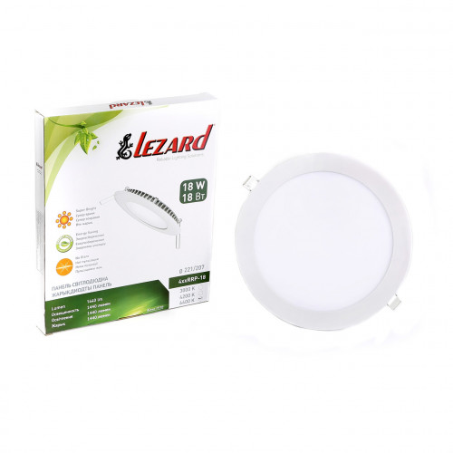 Светодиодный LED светильник врезной 18 Вт 6400К круглый ТМ LEZARD выполнен из алюминия. Данные светильники отличаются высокой надёжностью и безопасностью, круглые и квадратные светодиодные панели высокого качества, соответствующие международным стандартам. Легкая конструкция и компактные размеры LED панелей ТМ LEZARD обеспечивают простоту установки: встраиваемые круглые светодиодные, накладные круглые, встраиваемые светодиодные квадратные, квадратные накладные светодиодные панели. Источником света в панелях являются чипы LED 2835, цветовые температуры 4200К и 6400К. В панелях ТМ LEZARD используются IC драйвера которые обеспечивают отсутствие пульсации и мерцания светового потока. Также панели отличаются высокой степенью защиты - IP 40.