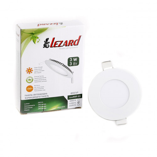 Светодиодный LED светильник врезной 3 Вт 4200К круглый ТМ LEZARD выполнен из алюминия. Данные светильники отличаются высокой надёжностью и безопасностью, круглые и квадратные светодиодные панели высокого качества, соответствующие международным стандартам. Легкая конструкция и компактные размеры LED панелей ТМ LEZARD обеспечивают простоту установки: встраиваемые круглые светодиодные, накладные круглые, встраиваемые светодиодные квадратные, квадратные накладные светодиодные панели. Источником света в панелях являются чипы LED 2835, цветовые температуры 4200К и 6400К. В панелях ТМ LEZARD используются IC драйвера которые обеспечивают отсутствие пульсации и мерцания светового потока. Также панели отличаются высокой степенью защиты - IP 40.