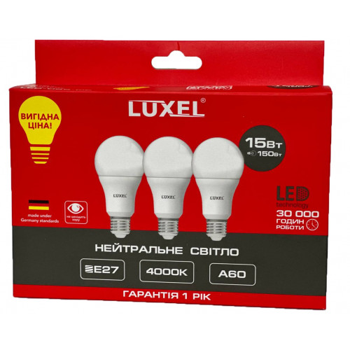 Светодиодная лампа Luxel A60 15W E27 набор 3 штуки (ECO 065-MP15W), Качество