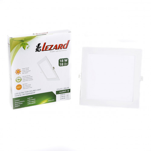 Светодиодный LED светильник врезной 18 Вт 4200К квадратный ТМ LEZARD выполнен из алюминия. Данные светильники отличаются высокой надёжностью и безопасностью, круглые и квадратные светодиодные панели высокого качества, соответствующие международным стандартам. Легкая конструкция и компактные размеры LED панелей ТМ LEZARD обеспечивают простоту установки: встраиваемые круглые светодиодные, накладные круглые, встраиваемые светодиодные квадратные, квадратные накладные светодиодные панели. Источником света в панелях являются чипы LED 2835, цветовые температуры 4200К и 6400К. В панелях ТМ LEZARD используются IC драйвера которые обеспечивают отсутствие пульсации и мерцания светового потока. Также панели отличаются высокой степенью защиты - IP 40.