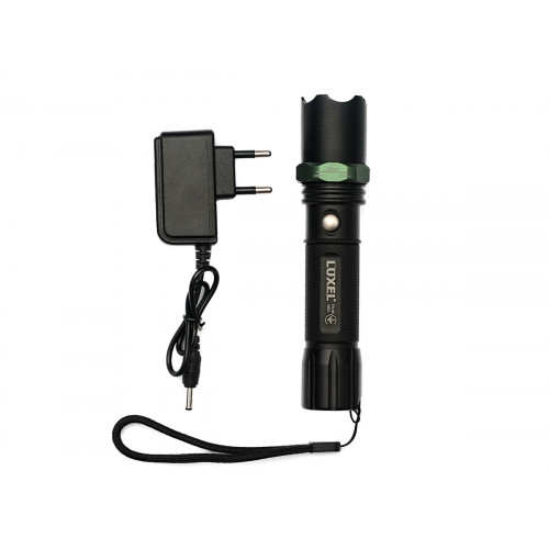 Корпус изделия изготовлен из металла, что делает его ударопрочным и долговечным. Фонарик способен подсветить не только дорогу, но и обеспечить светом целую компанию отдыха. Оснащен поворотной фокусировкой светового потока и имеет три режима работы. В комплекте поставляется зарядка с адаптером питания и кассетой под обычные батарейки.