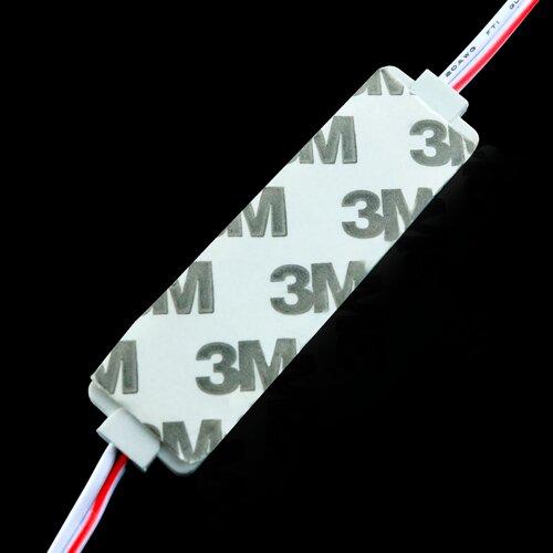 Этот светодиодный модуль может работать при напряжении 12 В постоянного тока с энергопотреблением в 2 Вт. Он состоит из трех COB-диодов и распространяет лучи под углом в 140°. Изделие излучает холодный свет с цветовой температурой 6500 К. Световой поток от модуля составляет 200 лм, а светоотдача равна 100 лм/Вт. Эксплуатационный ресурс модуля оценивается в 35000 часов. Класс пылевлагозащищенности модели – IP65.