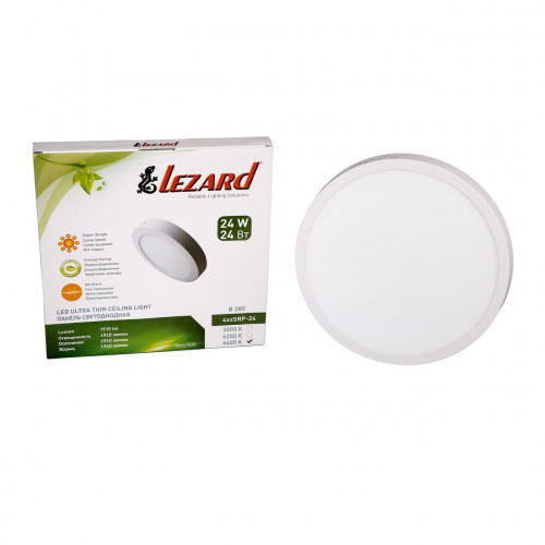 Светодиодный LED светильник накладной 24 Вт 6400К круг ТМ LEZARD выполнен из алюминия. Данные светильники отличаются высокой надёжностью и безопасностью, круглые и квадратные светодиодные панели высокого качества, соответствующие международным стандартам. Легкая конструкция и компактные размеры LED панелей ТМ LEZARD обеспечивают простоту установки: встраиваемые круглые светодиодные, накладные круглые, встраиваемые светодиодные квадратные, квадратные накладные светодиодные панели. Источником света в панелях являются чипы LED 2835, цветовые температуры 4200К и 6400К. В панелях ТМ LEZARD используются IC драйвера которые обеспечивают отсутствие пульсации и мерцания светового потока. Также панели отличаются высокой степенью защиты - IP 40.