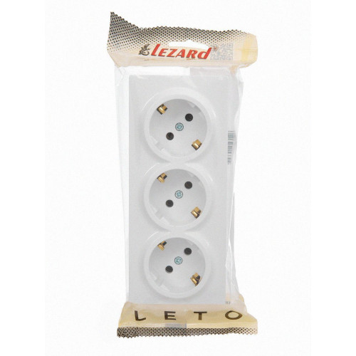 Тройная накладная розетка с заземлением Lezard LETO 16A, 250V