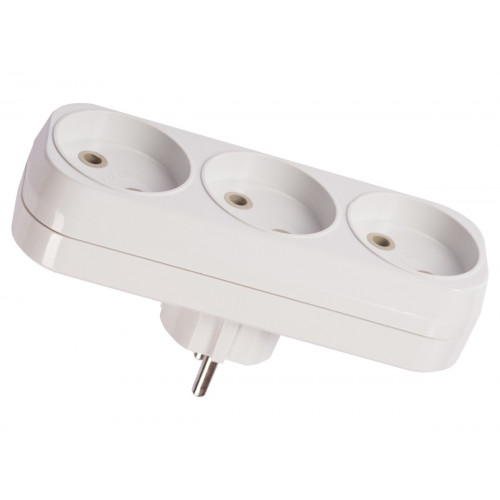 Тройник вертикальный белого цвета – это универсальное устройство, предназначенное для одновременного подключения нескольких электрических устройств. Контактная группа находится в защитном корпусе из негорючего поликарбоната.