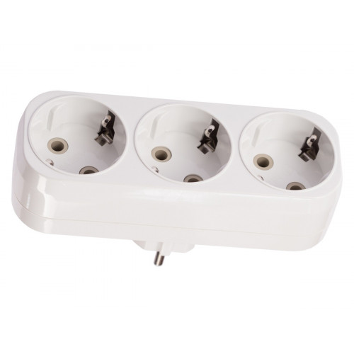 Тройник вертикальный с заземляющим контактом белого – это универсальное устройство, предназначенное для одновременного подключения нескольких электрических устройств. Контактная группа находится в защитном корпусе из негорючего поликарбоната.