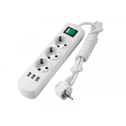 Удлинитель c заземлением 3 входа 2 метра с выключателем и USB Lezard LETITIA