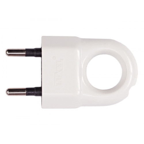 Вилка плоская с кольцом для розетки. Вилка плоская белого цвета производится из высококачественного пластика. Весь корпус держится на одном винте, который крепко зажимает всю конструкцию, никаких скрипов или люфтов. А за счет кольца она очень удобна при эксплуатации