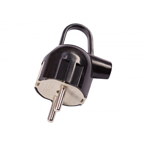 Вилка черного цвета с угловым заземлением с кольцом европейского стандарта. Корпус изготовлен из высококачественного пластика. Провода легко подключаются и не выпадают благодаря специальному зажиму на конце вилки.