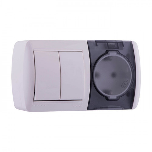 | Тип | Выключатель 2 клавишный и розетка с заземлением (горизонтальный) |