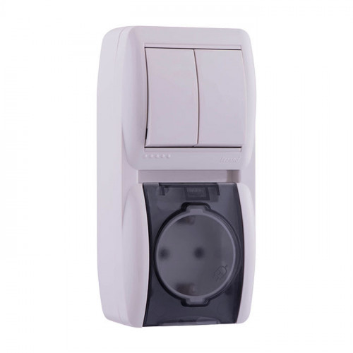 Выключатель 2-х кл. і розетка с / з, с кришкой, белый, вертикаль (10шт/120шт)