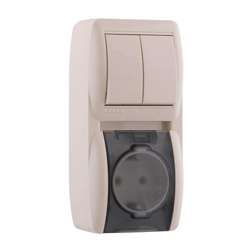 Выключатель 2-х кл. і розетка с / з, с кришкой, крем, вертикаль (10шт/120шт)