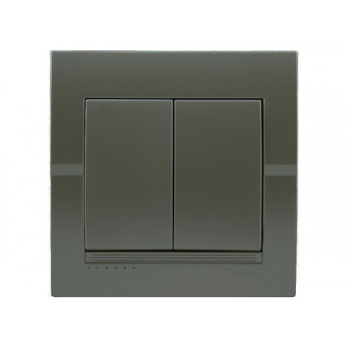 Выключатель двухклавишный графит ТМ LEZARD серии Deriy выполнен из негорючего, износостойкого к царапинам материала (PC) поликарбонат, который сохраняет свой блеск и первоначальный цвет на протяжение долгого времени, даже при попадании прямых солнечных лучей. Элементы, проводящие ток, состоят из фосфористой бронзы (94% Cu, 6% Sn), что обеспечивает слабый нагрев проводников. Контактный блок выполнен из прочного негорючего материала PBT, способного выдержать температуру 850 С и является ударостойким, контакты выключателя покрыты серебром (AgNi90/10). Жесткий, нержавеющий каркас выключателя из металла толщиной 1 мм обеспечит равномерное прилегание изделия к стене, а также имеет направляющие пазы для группового монтажа. что обеспечивает его удобную подводку.о фиксируется в посадочном месте, благодаря горизонтальному расположению заострённых крепежей