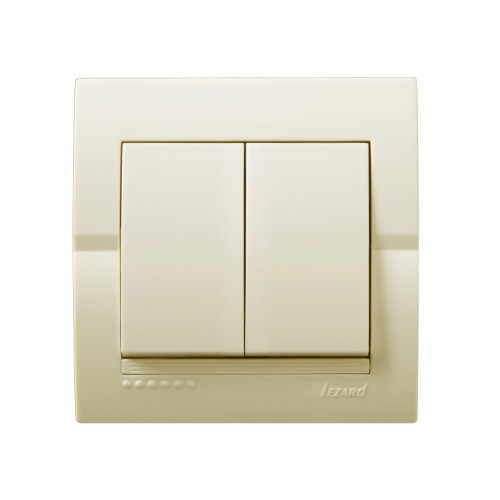 Выключатель двухклавишный крем ТМ LEZARD серии Deriy выполнен из негорючего, износостойкого к царапинам материала (PC) поликарбонат, который сохраняет свой блеск и первоначальный цвет на протяжение долгого времени, даже при попадании прямых солнечных лучей. Элементы, проводящие ток, состоят из фосфористой бронзы (94% Cu, 6% Sn), что обеспечивает слабый нагрев проводников. Контактный блок выполнен из прочного негорючего материала PBT, способного выдержать температуру 850 С и является ударостойким, контакты выключателя покрыты серебром (AgNi90/10).Жесткий, нержавеющий каркас выключателя из металла толщиной 1 мм обеспечит равномерное прилегание изделия к стене, а также имеет направляющие пазы для группового монтажа. что обеспечивает его удобную подводку.о фиксируется в посадочном месте, благодаря горизонтальному расположению заострённых крепежей