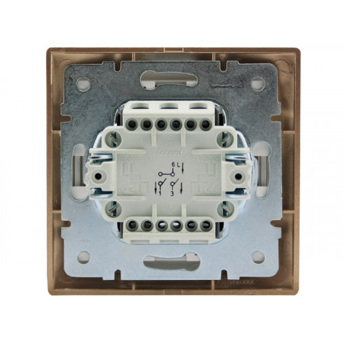 Выключатель двухклавишный светло-коричневый перламутр ТМ LEZARD серии Mira выполнен из негорючего, износостойкого к царапинам материала (PC) поликарбонат, который сохраняет свой блеск и первоначальный цвет на протяжение долгого времени, даже при попадании прямых солнечных лучей. Элементы, проводящие ток, состоят из фосфористой бронзы (94% Cu, 6% Sn), что обеспечивает слабый нагрев проводников. Контактный блок выполнен из прочного негорючего материала PBT, способного выдержать температуру 850 С и является ударостойким, контакты выключателя покрыты серебром (AgNi90/10). Жесткий, нержавеющий каркас выключателя из металла толщиной 1 мм обеспечит равномерное прилегание изделия к стене, а также имеет направляющие пазы для группового монтажа. что обеспечивает его удобную подводку.о фиксируется в посадочном месте, благодаря горизонтальному расположению заострённых крепежей