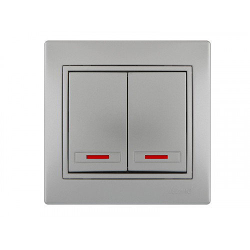 Выключатель двойной с подсветкой LEZARD Mira металлик серый