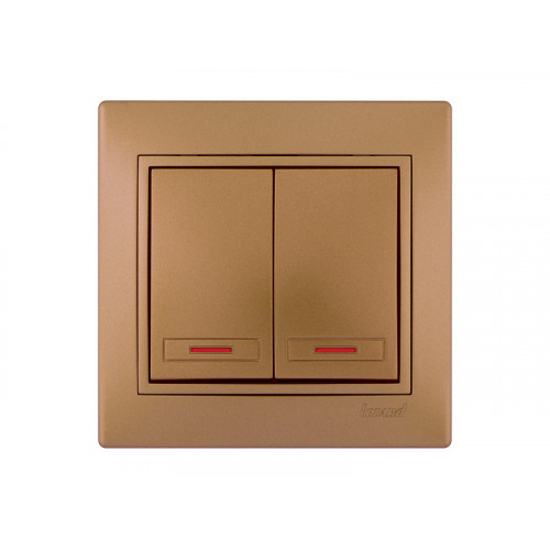 Выключатель двойной с подсветкой LEZARD Mira светло-коричневый перламутр
