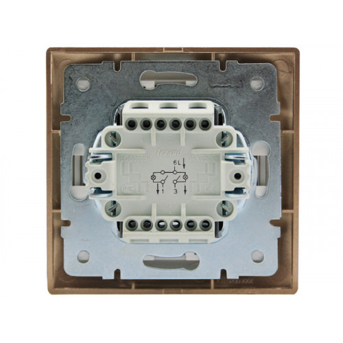 Выключатель двухклавишный с подсветкой светло-коричневый перламутр ТМ LEZARD серии Mira выполнен из негорючего, износостойкого к царапинам материала (PC) поликарбонат, который сохраняет свой блеск и первоначальный цвет на протяжение долгого времени, даже при попадании прямых солнечных лучей. Элементы, проводящие ток, состоят из фосфористой бронзы (94% Cu, 6% Sn), что обеспечивает слабый нагрев проводников. Контактный блок выполнен из прочного негорючего материала PBT, способного выдержать температуру 850 С и является ударостойким, контакты выключателя покрыты серебром (AgNi90/10). Жесткий, нержавеющий каркас выключателя из металла толщиной 1 мм обеспечит равномерное прилегание изделия к стене, а также имеет направляющие пазы для группового монтажа. что обеспечивает его удобную подводку.о фиксируется в посадочном месте, благодаря горизонтальному расположению заострённых крепежей