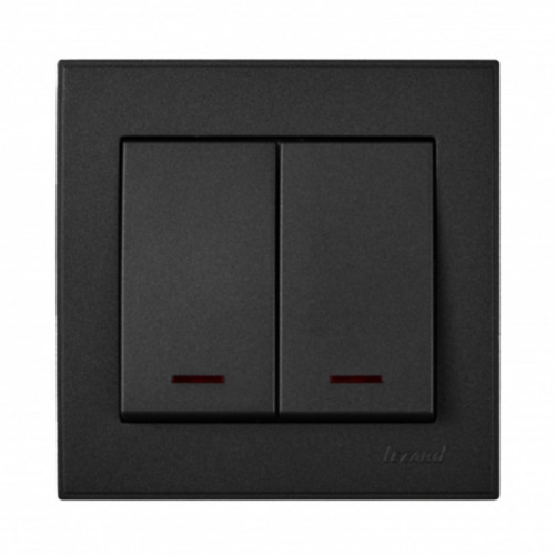 Выключатель двойной с подсветкой LEZARD Rain антрацит