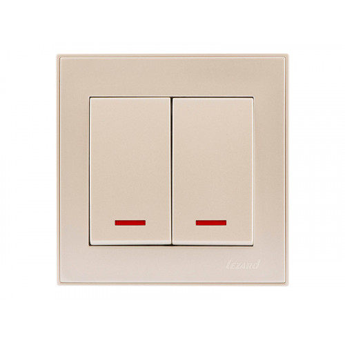 Выключатель двойной с подсветкой LEZARD Rain жемчужно-белый перламутр