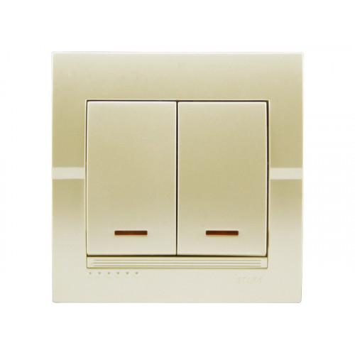Выключатель двойной с подсветкой LEZARD жемчужно-белый перламутр