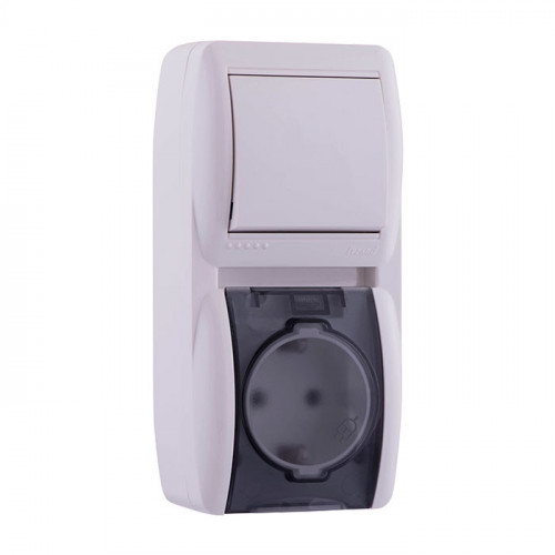 Выключатель і розетка с / з, с кришкой, белый, Вертикаль (10шт/120шт)