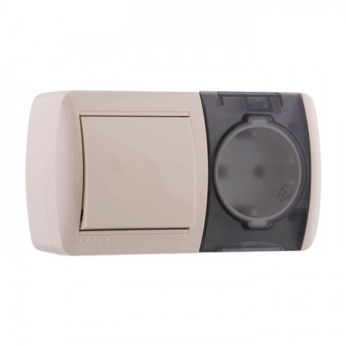 Выключатель і розетка с / з, с кришкой, крем, горизонталь (10шт/120шт)