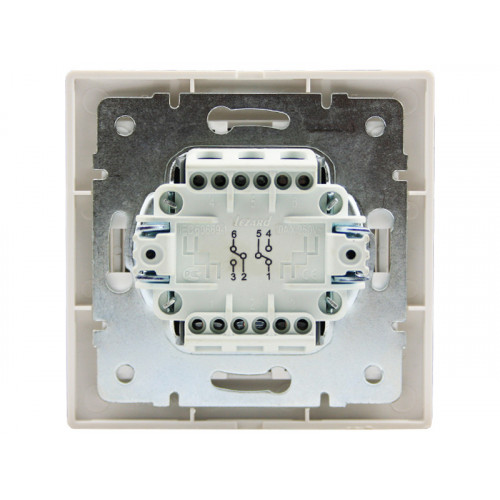 Выключатель проходной двойной одноклавишный белый ТМ LEZARD серии Mira выполнен из негорючего, износостойкого к царапинам материала (PC) поликарбонат, который сохраняет свой блеск и первоначальный цвет на протяжение долгого времени, даже при попадании прямых солнечных лучей. Элементы, проводящие ток, состоят из фосфористой бронзы (94% Cu, 6% Sn), что обеспечивает слабый нагрев проводников. Контактный блок выполнен из прочного негорючего материала PBT, способного выдержать температуру 850 С и является ударостойким, контакты выключателя покрыты серебром (AgNi90/10). Жесткий, нержавеющий каркас выключателя из металла толщиной 1 мм обеспечит равномерное прилегание изделия к стене, а также имеет направляющие пазы для группового монтажа. что обеспечивает его удобную подводку.о фиксируется в посадочном месте, благодаря горизонтальному расположению заострённых крепежей
