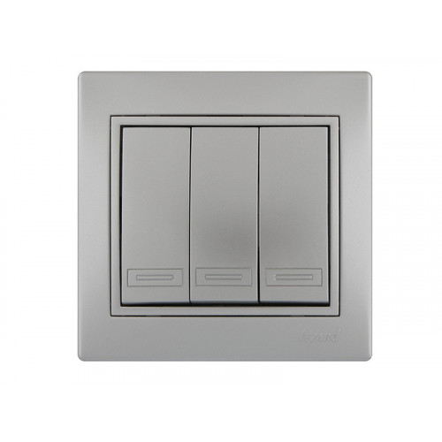 Выключатель тройной металлик серый ТМ LEZARD серии Mira выполнен из негорючего, износостойкого к царапинам материала (PC) поликарбонат, который сохраняет свой блеск и первоначальный цвет на протяжение долгого времени, даже при попадании прямых солнечных лучей. Элементы, проводящие ток, состоят из фосфористой бронзы (94% Cu, 6% Sn), что обеспечивает слабый нагрев проводников. Контактный блок выполнен из прочного негорючего материала PBT, способного выдержать температуру 850 С и является ударостойким, контакты выключателя покрыты серебром (AgNi90/10). Жесткий, нержавеющий каркас выключателя из металла толщиной 1 мм обеспечит равномерное прилегание изделия к стене, а также имеет направляющие пазы для группового монтажа. что обеспечивает его удобную подводку.о фиксируется в посадочном месте, благодаря горизонтальному расположению заострённых крепежей.
