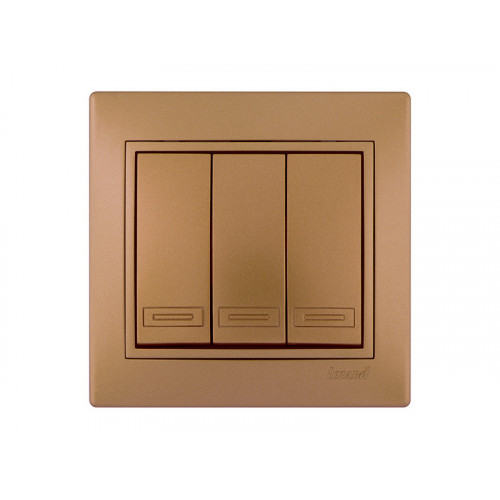 Выключатель тройной LEZARD Mira светло-коричневый перламутр