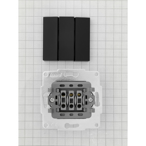 Выключатель тройной LEZARD VESNA черный (10шт/120шт)