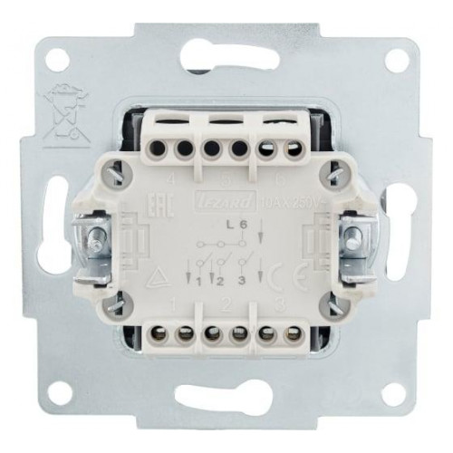 Выключатель графит ВЕСНА/VESNA-Lezard. Корпус, защёлки и внутренный пластик выполнены из ABS пластика, внутренный механизм негорючий ПБТ. Токопроводящие элементы выполнены из меди и цинка (MS70). Каркас выполнен из металла толщиной 1мм. покрыт цинком. Выключатели Lezard выдерживают нагрузку тока до 10А и 250В, винтовое соединение.